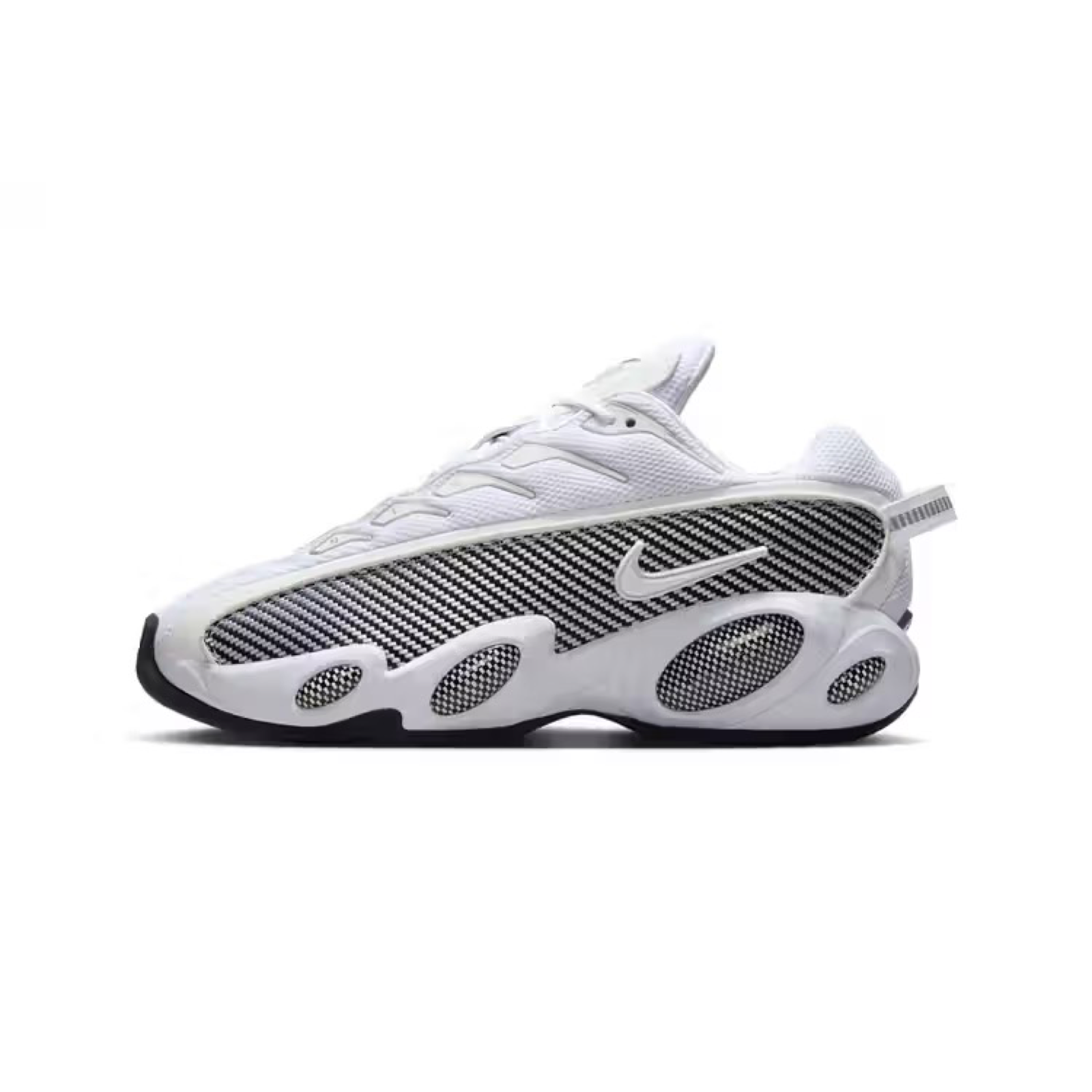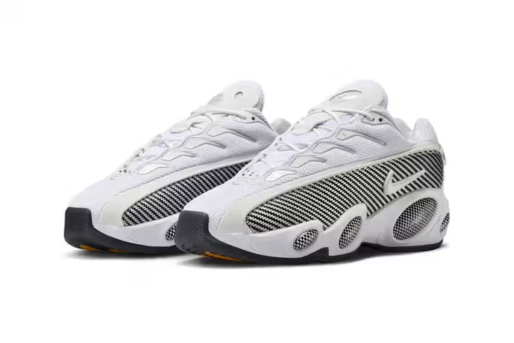 Following the reveal of the Nike NOCTA Glidein the stealthy all-black colorway, the shoe arrives in a “White/Black” iteration for the fall. Dream Drake‘s partnership with Nike extends with this minimalistic version on the model originally debuted in 2023. Inspired by the Zoom Flight 95, the shoe blends retro basketball stylings with contemporary details, featuring mesh uppers, TPU layers, faux carbon and fiber panels. The clean white base is accented by black accents across the midfoot and sole while checkerboard pods detail the shoe along with NOCTA logos, the silver insoles and reflective piping. Designed for comfort, the midsole is dual-density and features the signature bug-eye details.