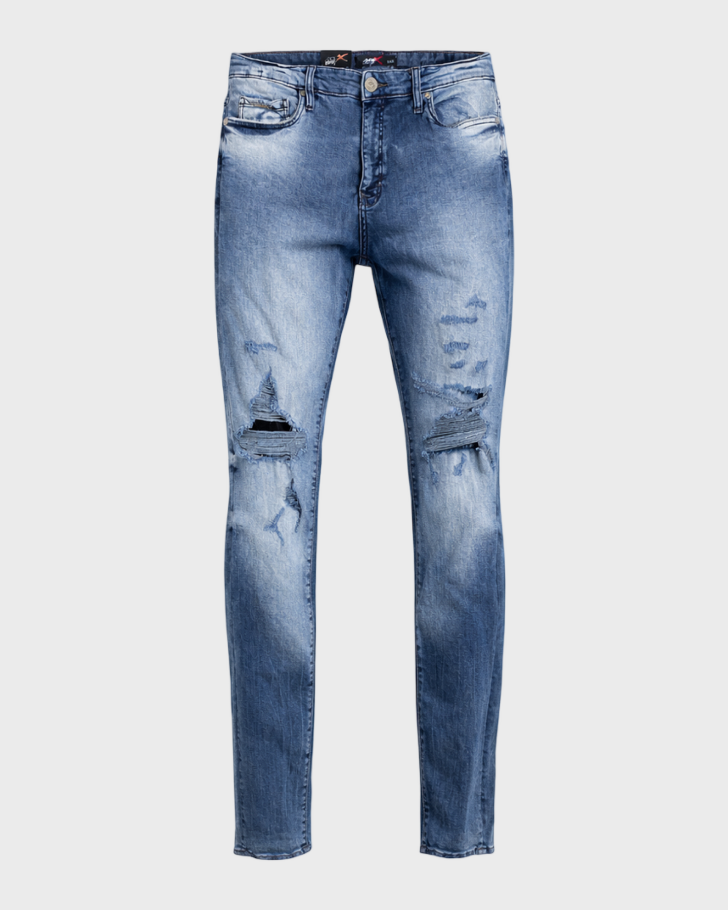 075 MTX Men’s Distressed Slim Fit Jeans – Faded Blue Ripped Stretch Denim